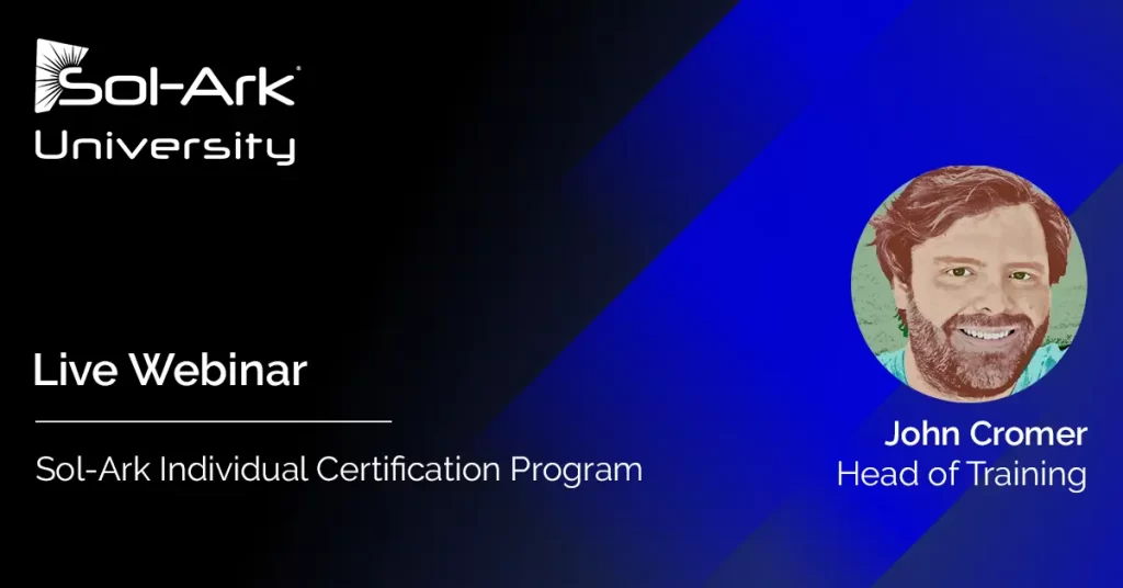 Live Webinars: On-demand courses have to start somewhere. Check out our live programs to keep up-to-date on Sol-Ark news and products.